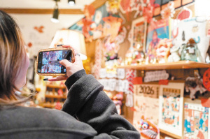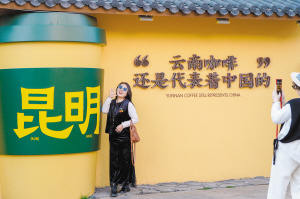 游客在位于翠湖周边的翠湖咖啡文化中心拍照打卡。