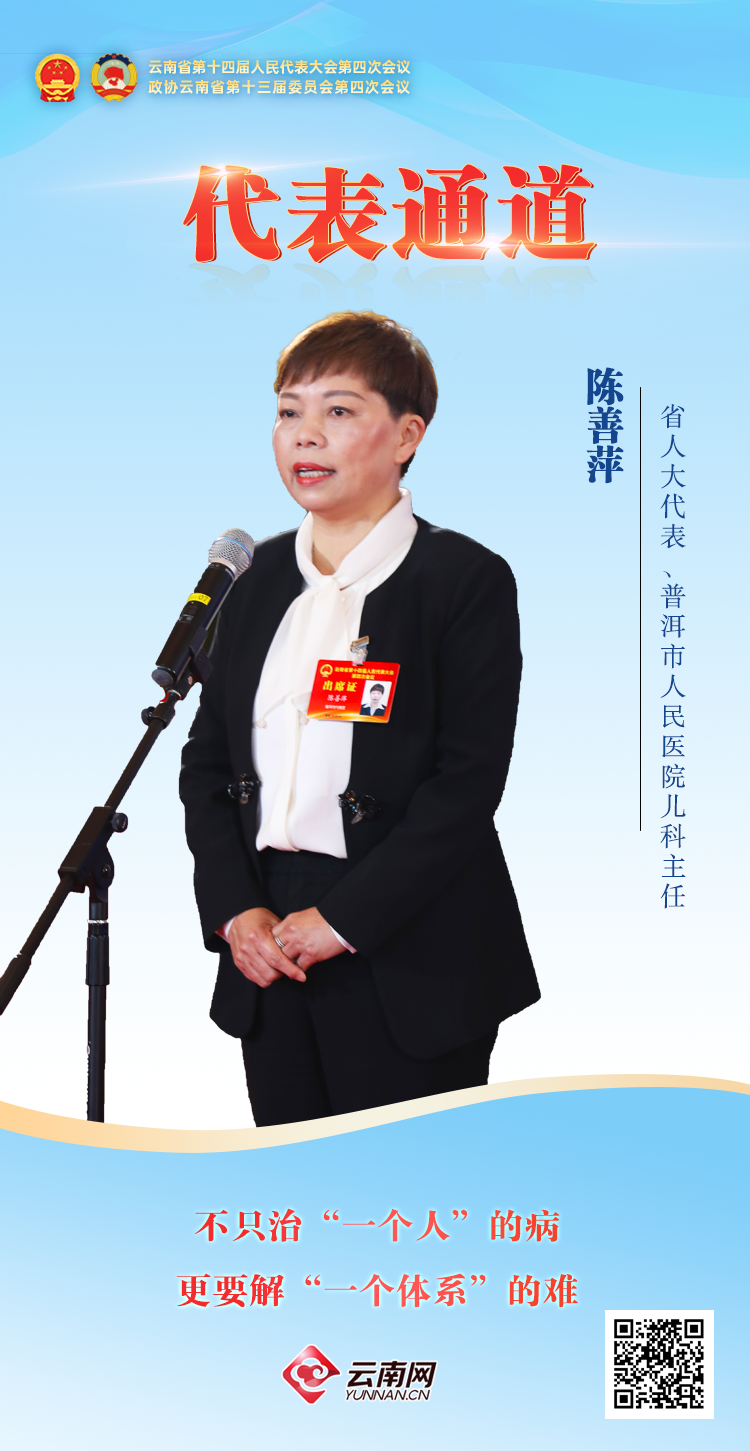 “人们常说,儿科是‘哑科’。孩子不会说,更要我们用心去听、去看。”省人大代表、普洱市人民医院儿科主任陈善萍道出了儿科医生的特殊使命,“我最大的心愿,就是让这片土地上的孩子,都能健康地长大”。