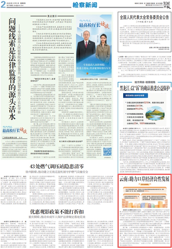 据了解,云南省检察机关积极服务中心建设,加强跨境旅游、经济贸易等领域司法保护,起诉涉外刑事犯罪4988人,起诉走私、危害进出口税收征管等犯罪725人。积极融入中国老挝磨憨—磨丁经济合作区等口岸建设,健全完善涉外执法司法衔接和案件管辖机制,助力口岸经济良性发展。积极参与昆明中央法务区建设,助力完善涉外公共法律服务体系。“今年是‘十五五’开局之年,也是云南‘3815’战略发展目标‘八年大发展’的决胜期,我期待检察机关积极参与打造一流营商环境,加强知识产权综合司法保护,深化知识产权恶意诉讼监督,保障科技创新,助力打好云南经济转型升级攻坚战。”全国人大代表、昆明聚英科技有限公司运营总监潘本芳表示。