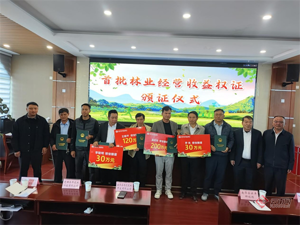 这本小小的权证,不仅让李联明的113亩林地焕发新生,使其余7位林农成为林权制度改革首批受益者,也让南华县230万亩林地找到了生态富民的新路径。南华农商行同步为这7位林农提供金融支持,累计授信达380万元,以金融赋能让林业经营收益权真正“活”起来。
