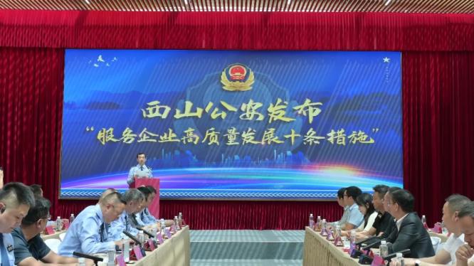 优化营商环境,是新时代推动经济高质量发展的核心引擎,更是产业集聚的“强磁场”。2025年8月28日,昆明市公安局西山分局(以下简称西山分局)正式推出服务企业“十条措施+双机制”,并揭牌“昆明市公安局西山分局护航民营企业高质量发展服务点”,以主动迎企的姿态,开启警企联动新篇章。