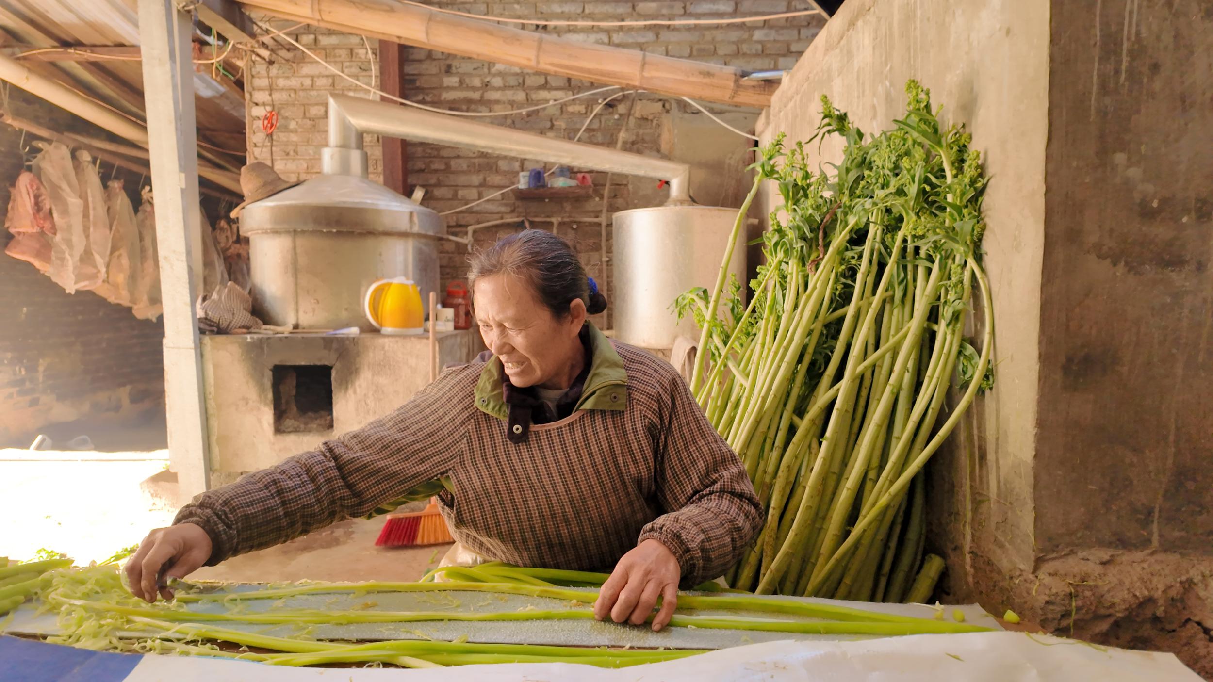 “我们在村活动场所设立收购点,现收现结,让群众看得见收益、放心种植。”河东村党总支副书记张晓鑫介绍,通过“订单式”合作,试种贡菜品质优、收益好,迅速赢得村民信任。种植规模从最初的20亩,逐年扩大至去年的50亩,带动20户农户增收;仅削皮加工日均就可为12名村民提供岗位。今年,全村贡菜种植面积预计突破80亩。
