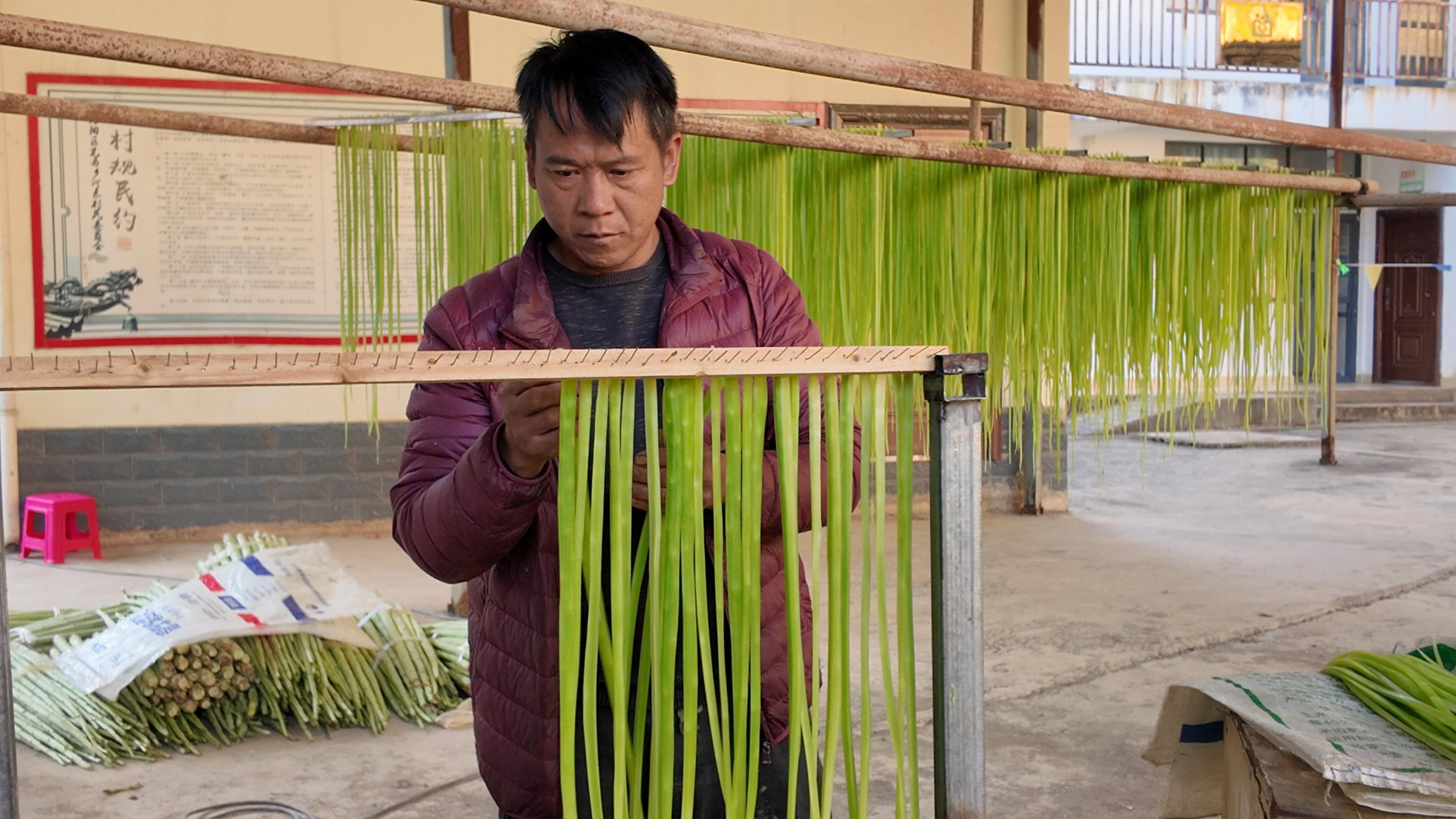 试种期间,村党员干部和致富带头人带头种植,并将“技术课堂”搬到田间地头,面对面讲解示范。村里还灵活搭建简易烘烤房,保障阴雨天气下的加工品质。采收加工环节,组织村里妇女参与削皮,削下的菜皮用于喂养牲畜,既实现资源循环利用,也提供了就近就业岗位。