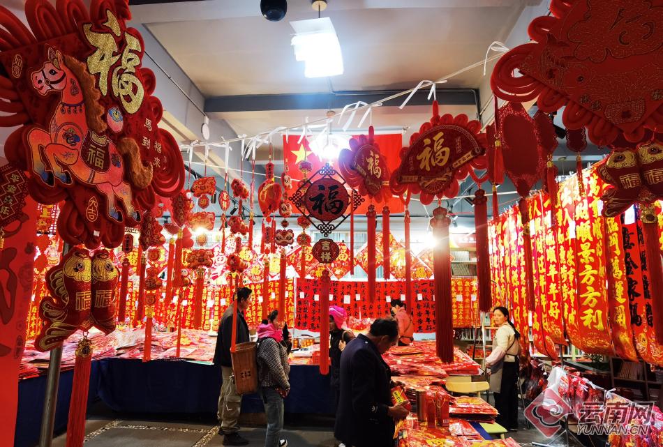随着马年春节临近,曲靖市沾益区年货市场内一派红火景象。鲜艳的春联、喜庆的福字映照着人们的笑脸,处处洋溢着浓郁的年味。市民穿梭在各个摊位之间,精心挑选着心仪的年货,在热闹祥和的氛围中迎接新春的到来。