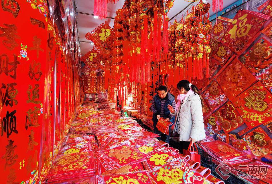 市民在曲靖市沾益区年货市场内选购春联福字。阮兴元 摄