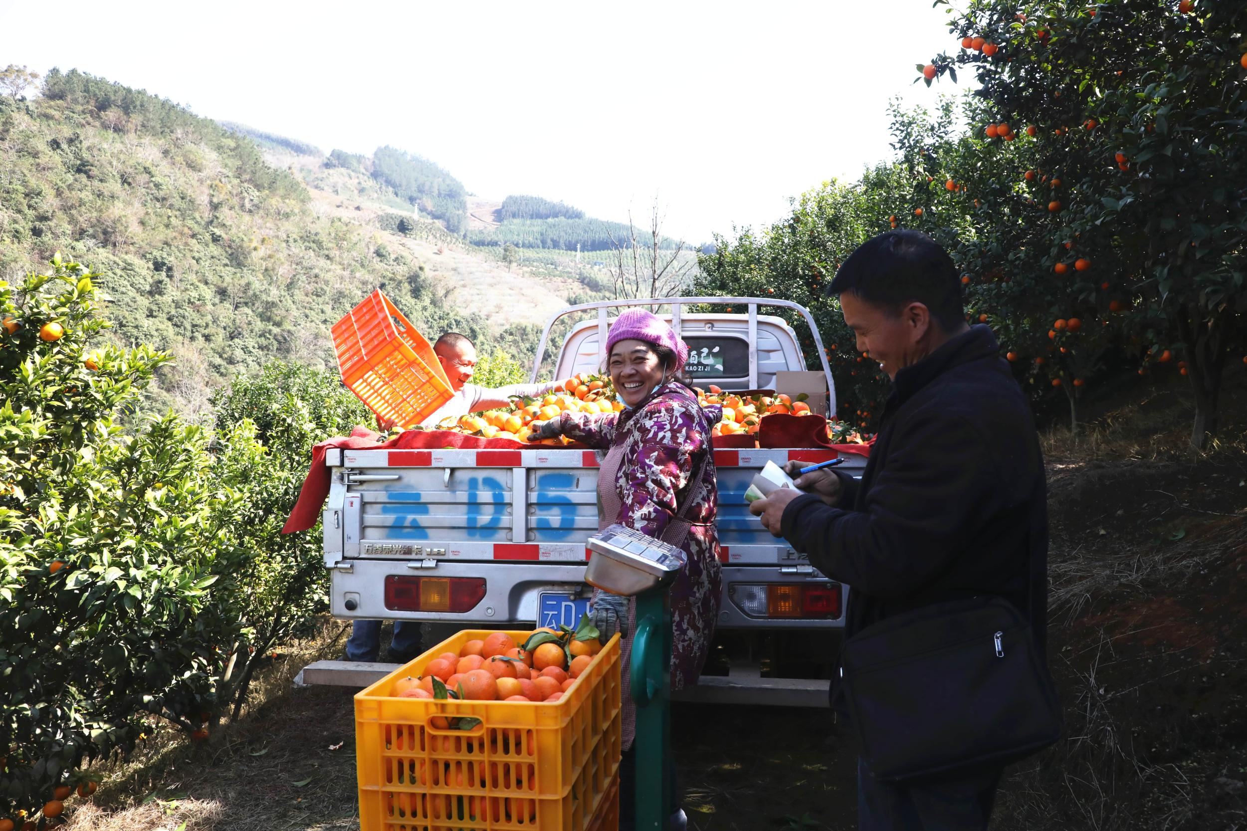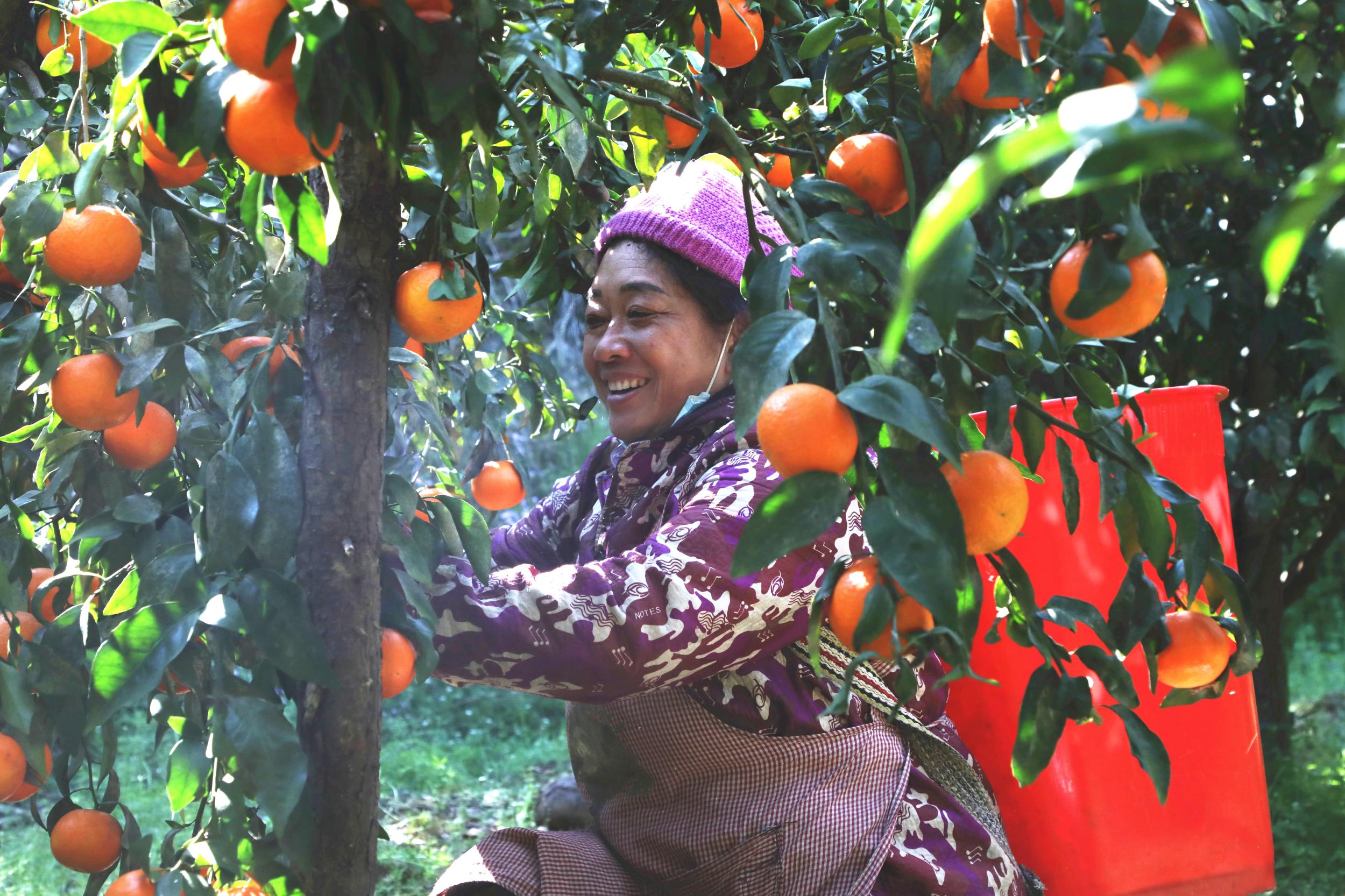 “这几天天气好,正好抓紧摘果,赶春节市场!”坝林村果农罗志方一边忙着指挥工人采摘,一边笑着对记者说。他的沃柑基地里,十多名村民正手脚麻利地剪果、装筐,三轮车往来穿梭,将一筐筐“金果子”运往村口的收购点。