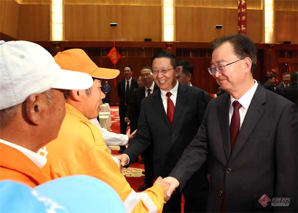 会前,王宁、王予波等与出席茶话会的基层一线代表握手交流。周灿 摄