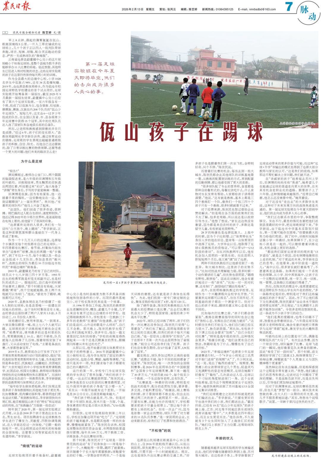 原标题:《农民日报》整版聚焦临沧沧源佤山少年足球队