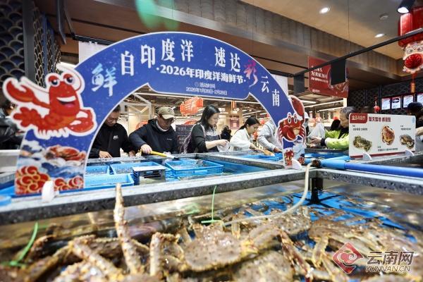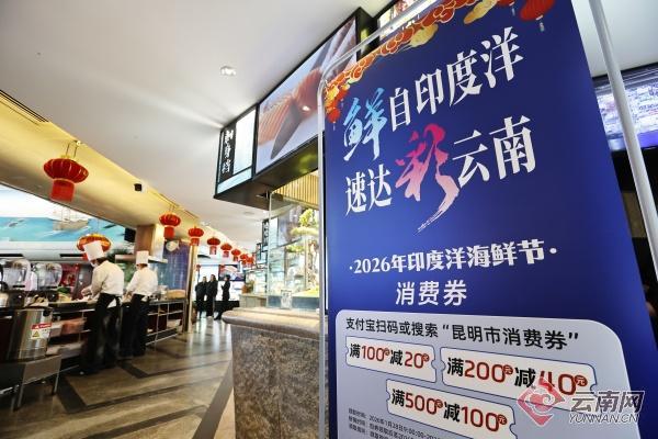昆明市滇池路快乐海鲜店内,2026年印度洋海鲜节消费劵受关注。记者 陈飞 摄