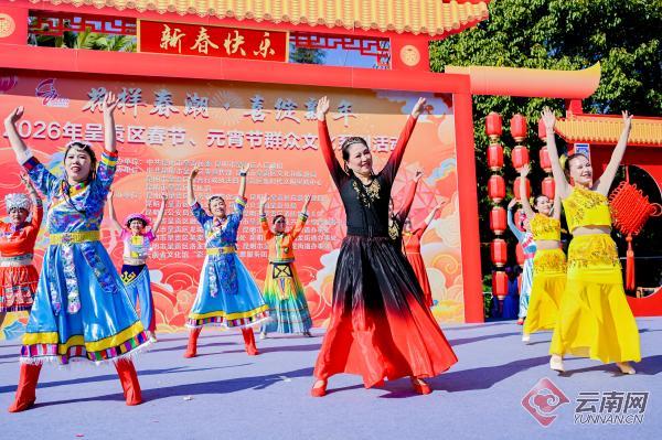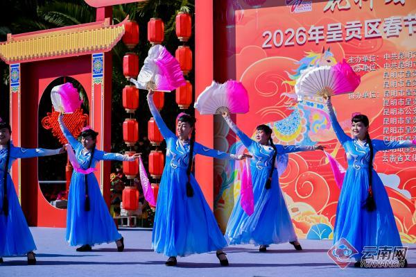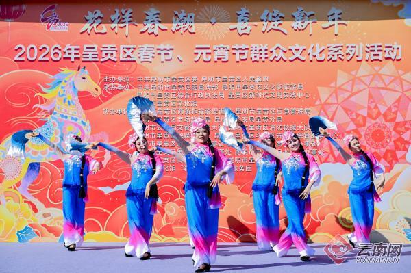 云南网讯(记者 张成)大年初一,昆明市呈贡区洛龙公园内锣鼓喧天、歌舞飞扬,以“花样春潮·喜绽新年”为主题的2026年呈贡区春节、元宵节群众文化系列活动在此拉开帷幕。