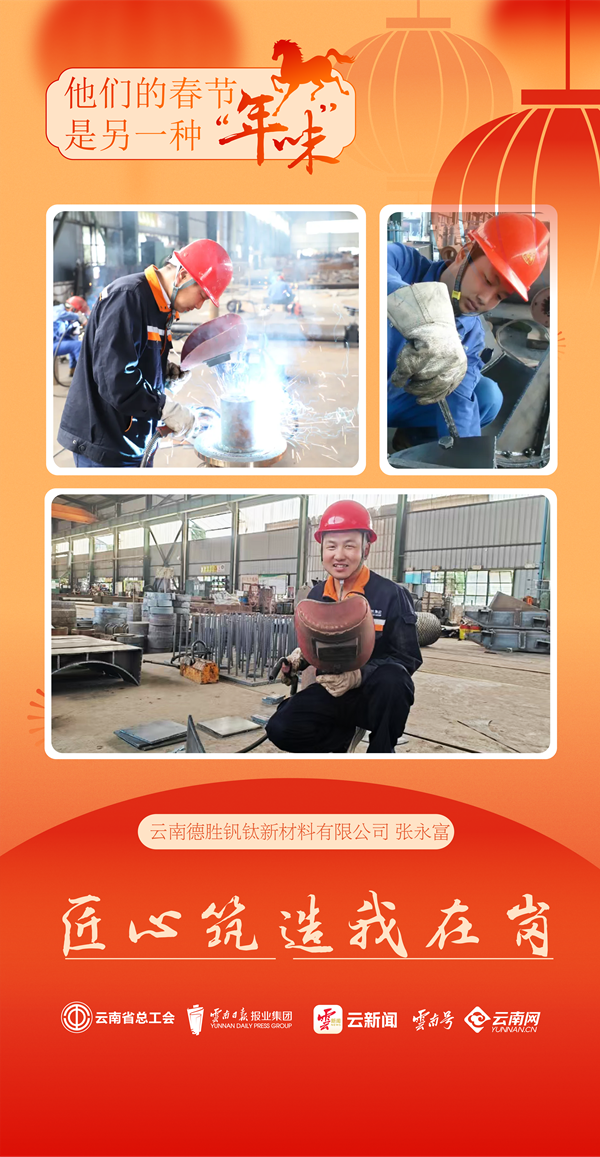 马年新春,云南德胜钒钛新材料有限公司的生产车间里机器隆隆,全国劳动模范、彝族党员张永富的身影依旧忙碌在一线,作为机修厂机安工段铆工三班班长,这个春节他再次放弃与家人团圆,扎根车间与项目现场,用工匠之心守护着生产设备的平稳运行。