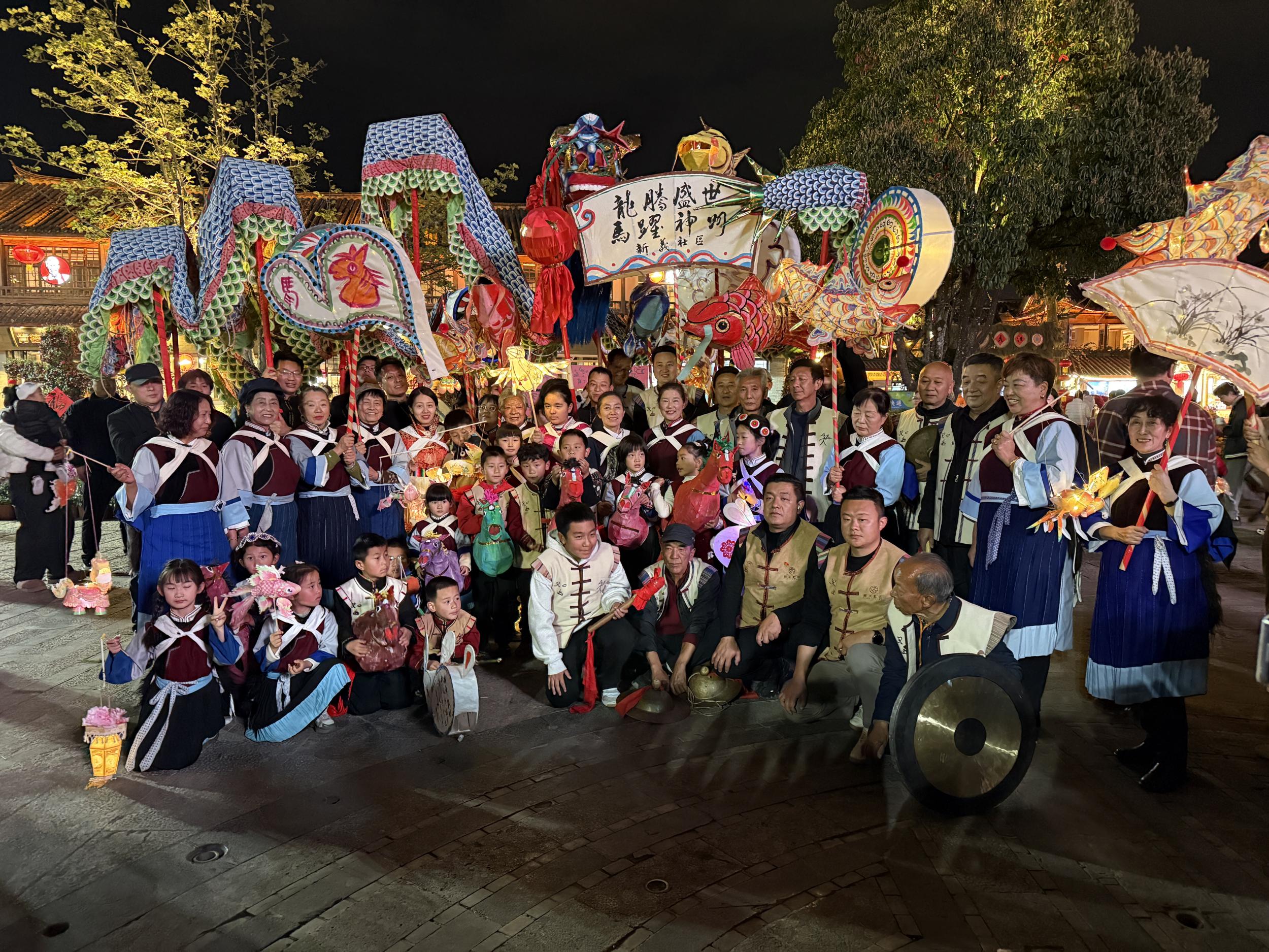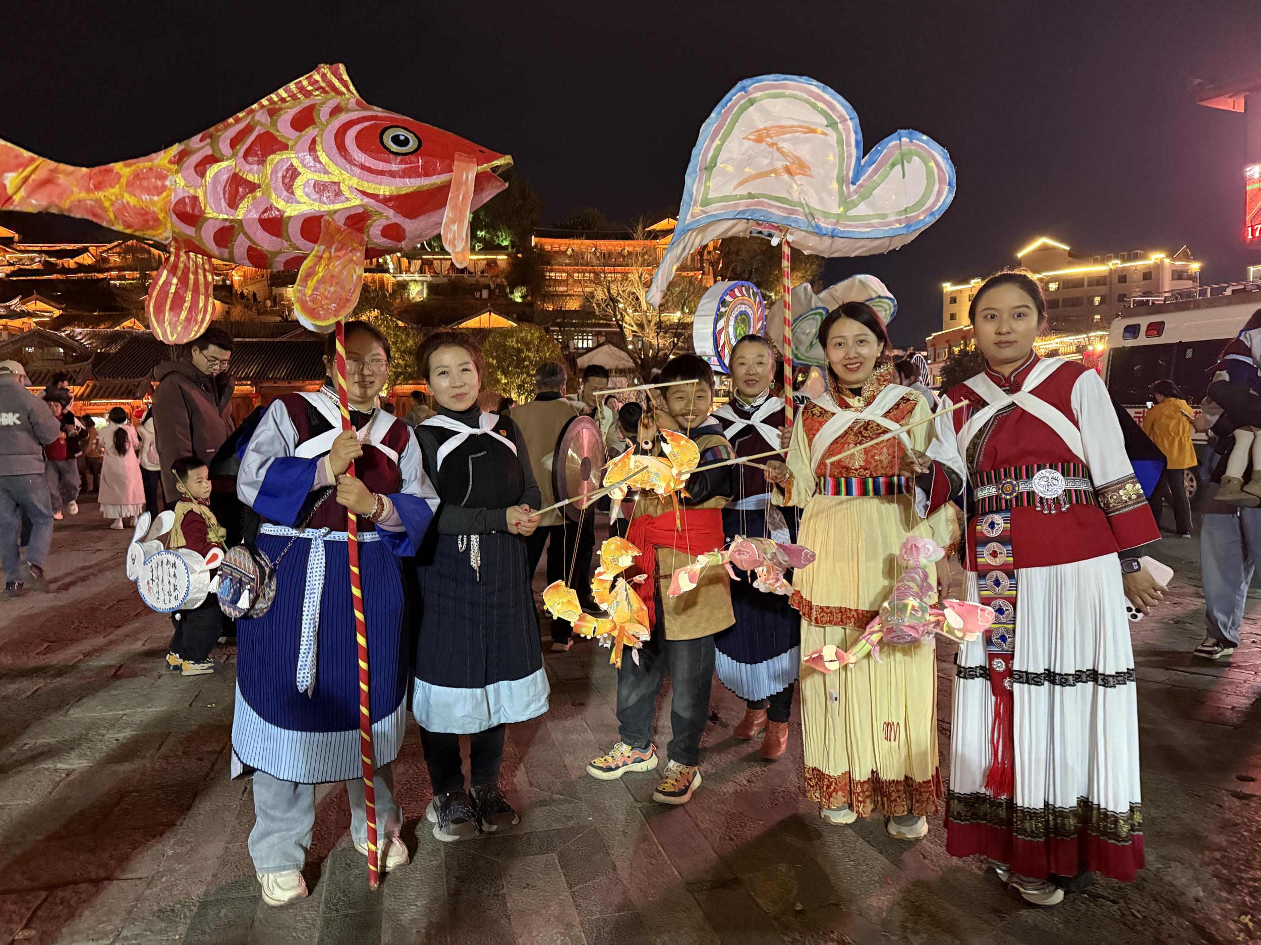 据统计,当晚参与提灯巡游的社区居民、手工技艺能手及志愿者近千人,沿途观看和加入的市民游客超过万人次。活动不仅营造了浓厚的节日氛围,更让传统花灯技艺和纳西民俗文化在互动中得以活态传承。