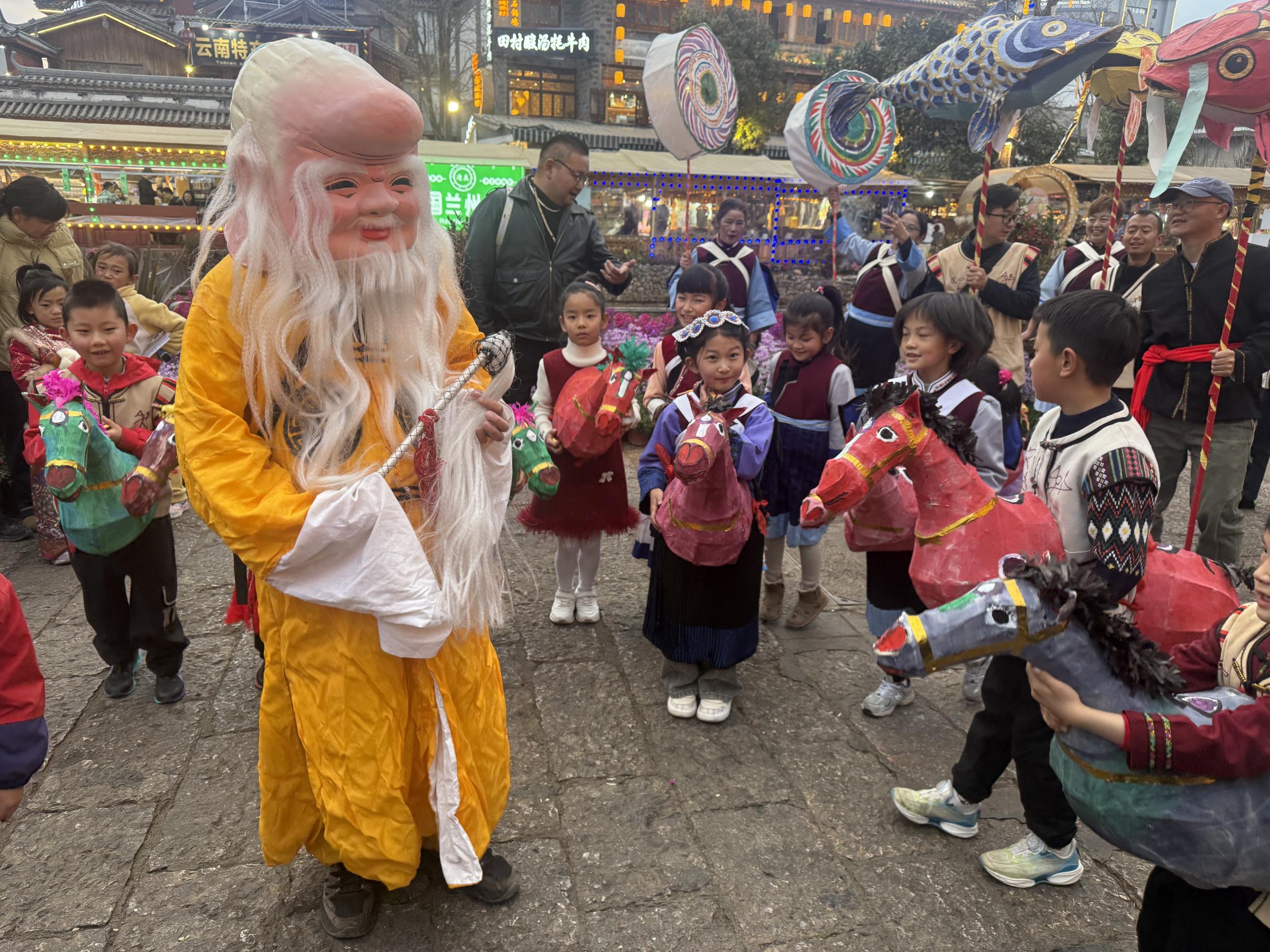 “每年元宵都来古城看灯,今年能跟着队伍一起走,感觉特别有意义。”家住古城周边的市民和文华带着孩子全程参与了巡游。来自广州的游客张生则表示:“提着花灯走在古城的巷子里,听着纳西族的歌声,这种沉浸式的体验太难得了,真切感受到了传统文化的生命力。”