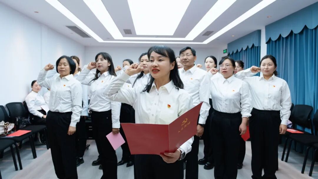 画面定格在全体女党员干警重温入党誓词时,大家微红的眼眶与坚毅的嘴角形成的动人对比。温暖的灯光下,她们的瞳孔里,清晰地映照着党旗的鲜红和同志们鼓励与共鸣的目光,那目光如簇簇火苗,汇聚成温暖而强大的能量。