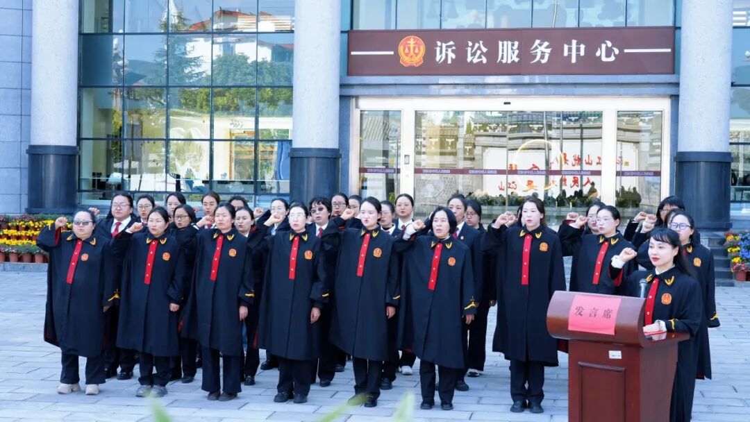 当春风开始巡游,丽江市两级法院的巾帼干警们,选择以一场名为“党徽耀天平·巾帼护法魂”的“六个一”主题实践,作为对使命的庄严回应。她们走出法庭,深入山水之间、群众之中,在党建、法治、生态与民族交融的壮阔画卷上,追寻光,并最终成为一束温暖而坚定的法治之光。