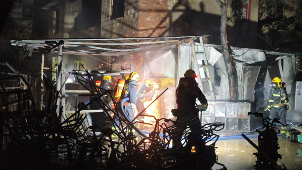 现场,12辆二手电动自行车烧损,有的只剩骨架,活动板房也被烧毁。火势蔓延到了周边建筑,好在建筑内已经长期没有人员居住。经调查,起火原因为电动自行车换电柜内,蓄电池发生热失控起火,引燃周围可燃物,蔓延扩大成灾。