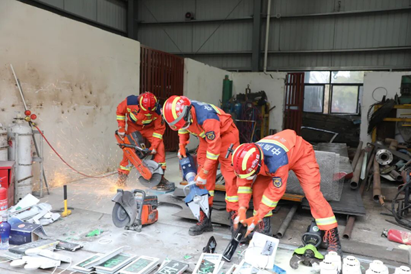 昆明市消防救援支队联合市场监督管理局等多部门举办2026年“3·15国际消费者权益日”罚没物资销毁活动。消防人员利用氧焊、切割机、液压剪等破拆器械集中销毁了灭火器、消防水带、消防应急标志灯具等10余个种类、300余件假冒伪劣消防产品,省、市级多家电视媒体全程跟踪报道。