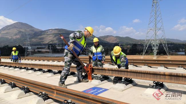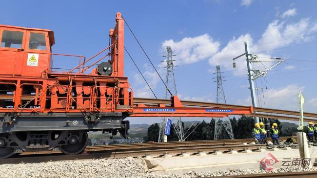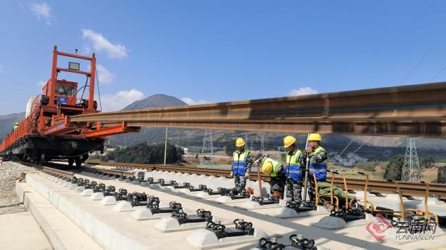 云南网讯(记者 夏方海 通讯员 杨影 邓小龙 何思远)3月18日上午,在云南昆明崔家庄铺轨基地,随着中铁十六局铺轨机的精准作业,第一对500米长钢轨稳稳落在无砟轨道上,标志着渝昆高铁昆明往重庆方向的铺轨施工正式启动,渝昆高铁建设取得重大突破。