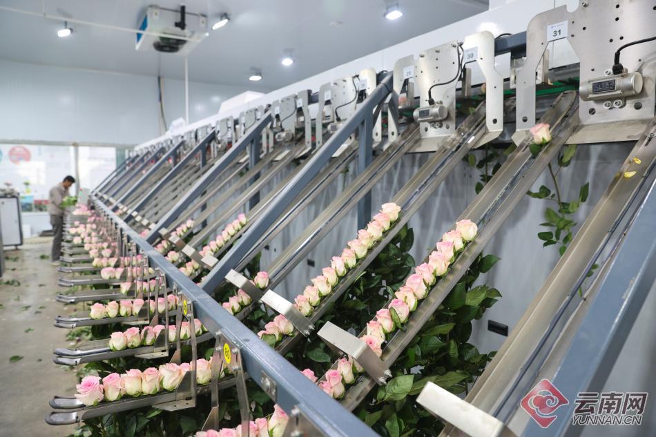 丽江现代花卉产业园内的花卉智能分级生产线。高吴双 摄