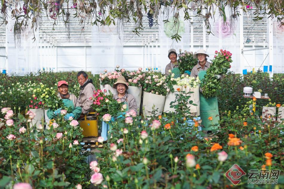 丽江花卉产业园通过产业升级,鲜切花畅销国内外,附近群众就近就地就业获增收。陈飞 摄