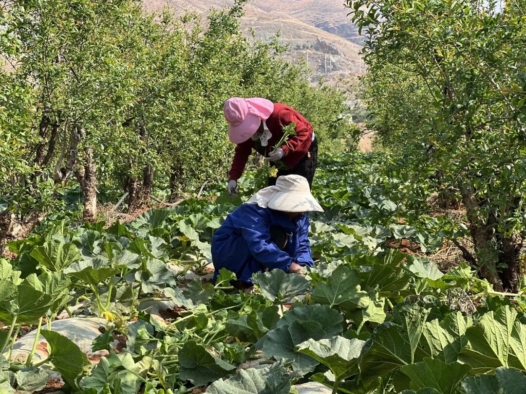 更让刘文凤踏实的是,这批南瓜从种到销都有了着落。他们与阿里巴巴签订了收购合同,企业统一供应种子、农药,农技人员定期上门指导浇水、施肥、整枝,成熟后按每公斤4元保底回收。“以前种点啥都怕卖不出去,现在有了订单,只管把活干好就行。”