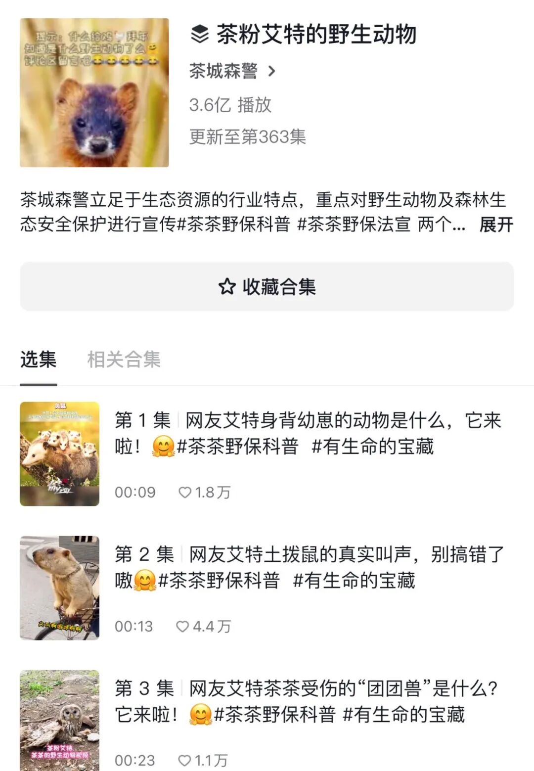 8年来,“茶城森警”账号从未间断更新,累计发布短视频5096条,播放量突破25亿次,获赞超8亿次。其中《茶粉艾特茶茶的野生动物》系列合集已更新至358集,深受网民喜爱。2023年,“茶城森警”获评中央网信办“2023年度走好网上群众路线百个成绩突出账号”,成为推动野生动物保护的重要普法平台。