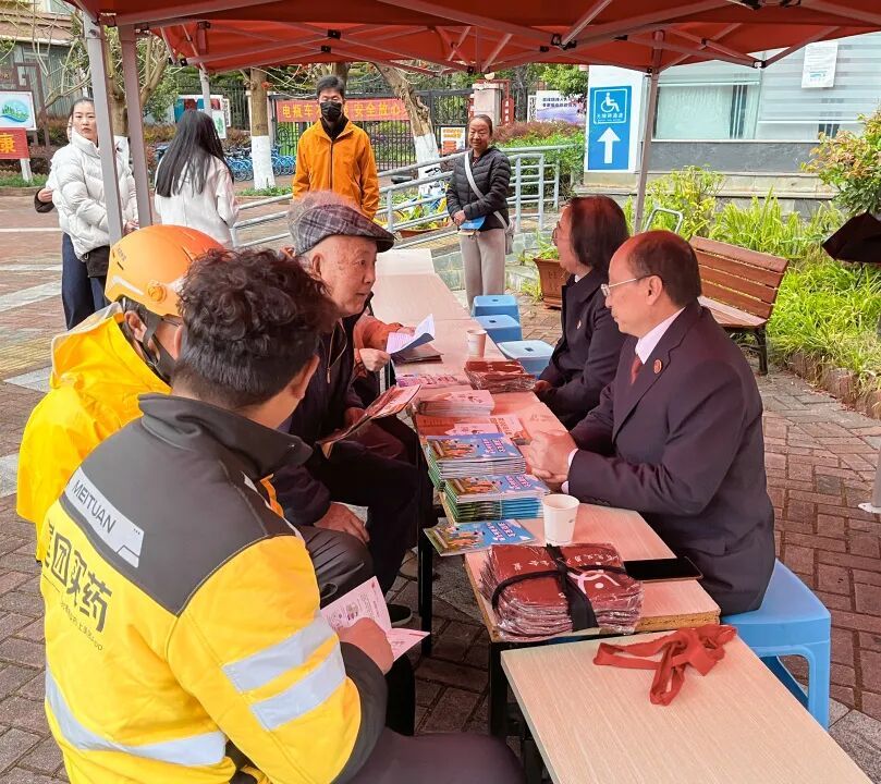 与此同时,省检察院还开展了“弘扬雷锋精神 建功时代华章”志愿服务,将募捐的生活、学习用品送至云南淼鑫养老院,实地查看养老设施,详细了解运营难题,为老年人提供赡养、继承等法律咨询渠道,切实守护老年群体合法权益。此外,检察人员联合福海街道采莲社区在广场开展“零距离”普法,围绕消防安全、防范非法集资、电信诈骗维权、婚姻家庭纠纷、依法带娃等群众关切问题,发放宣传资料、解读法律规定、解答咨询疑问,让法治宣传接地气、入民心,提升群众法治意识与自我保护能力。
