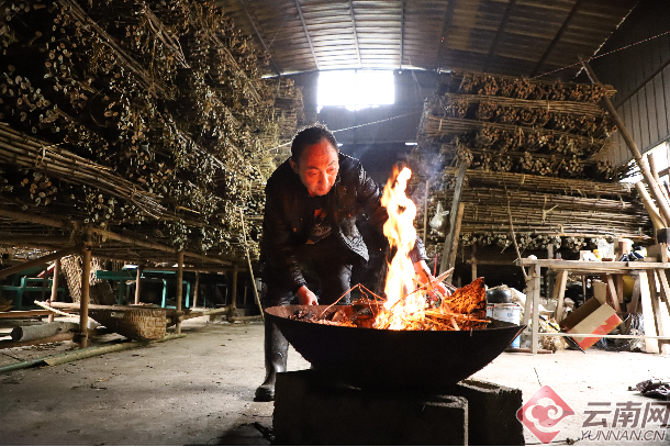 源丰种养殖农民专业合作社理事长刘厚元熏制竹材。 何桂花 摄