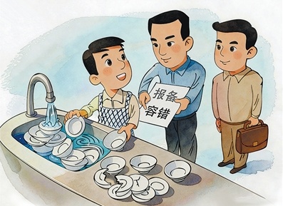 改革创新从来不是坦途,走的往往是别人没走过的路,蹚的往往是别人没蹚过的河。允许试错、宽容失败,不是放松要求,而是尊重规律。让敢“洗碗”者无后顾之忧,让想干事者轻装上阵,我们的事业才能不断闯出新天地。(徐雷鹏)