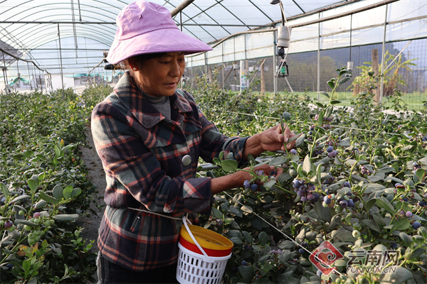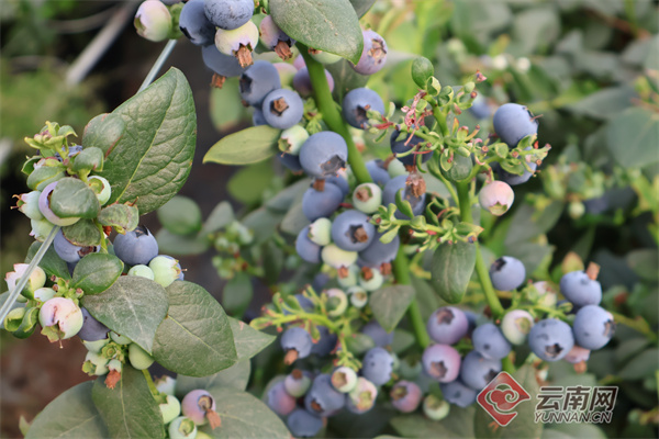 近日,走进大理州平坡镇蓝莓种植基地,满眼翠绿间,一串串饱满多汁、色泽紫亮的蓝莓挂满枝头,薄薄的白霜,果香四溢、惹人垂涎。