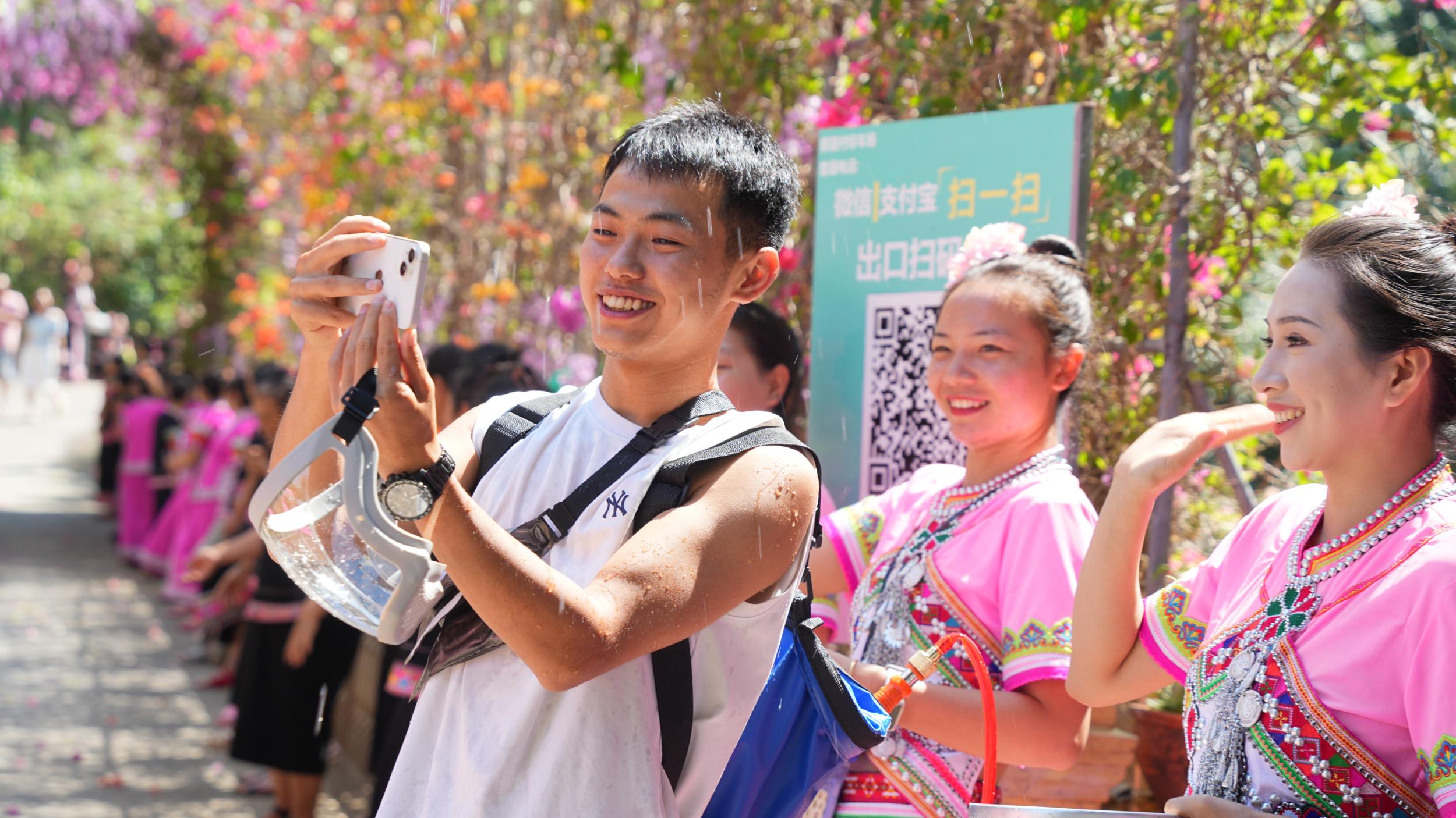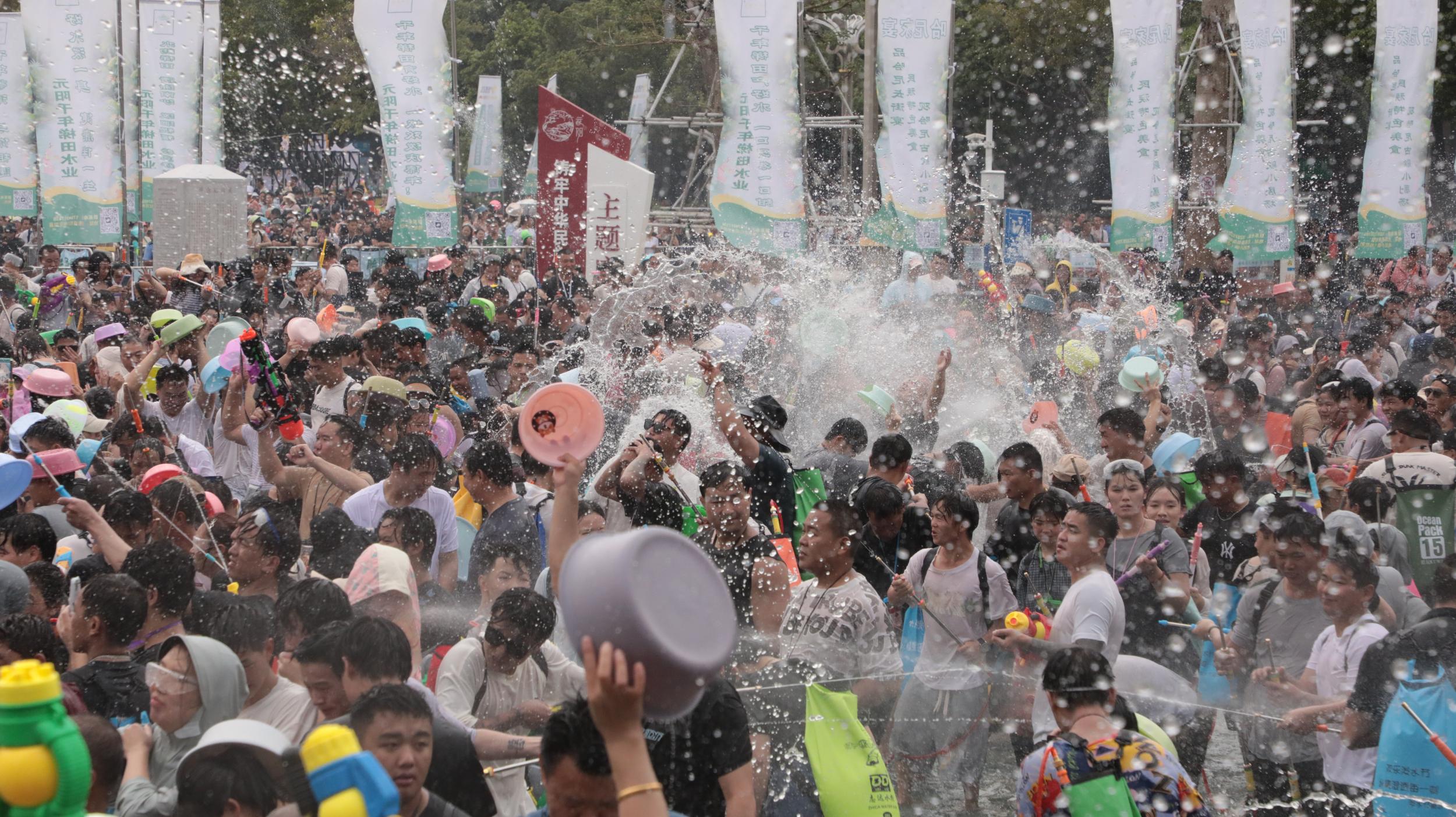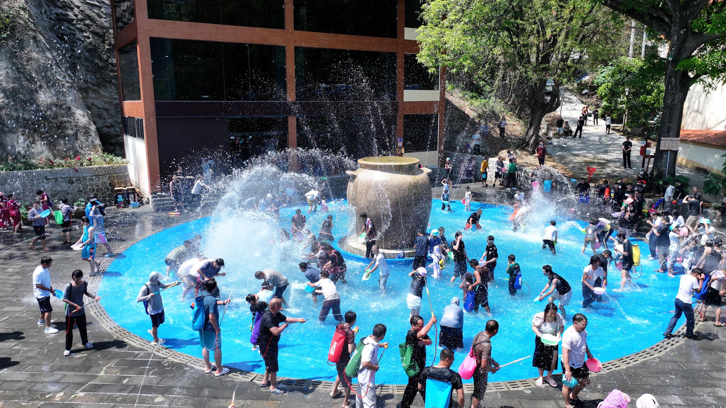 开幕式后,全场进入泼水狂欢,来自全国多地的游客沉浸其中,共享祝福。河北游客刘柏兴奋地说:“来自不同地区的各族群众相聚在一起,相处非常融洽,现场氛围也很热烈,真切感受到了当地的活力与热情。”
