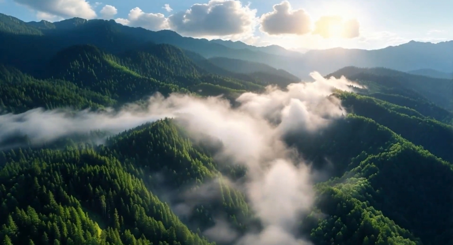青山叠翠,云雾缭绕