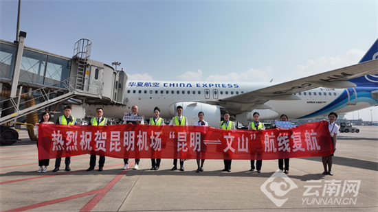 云南网讯(记者 彭锡)4月17日,随着华夏航空G54548航班平稳起降,昆明至文山航线正式恢复通航,标志着昆明机场与文山机场之间的空中便捷通道再度重启,为两地商务往来、探亲访友、文旅出行搭建高效空中桥梁。