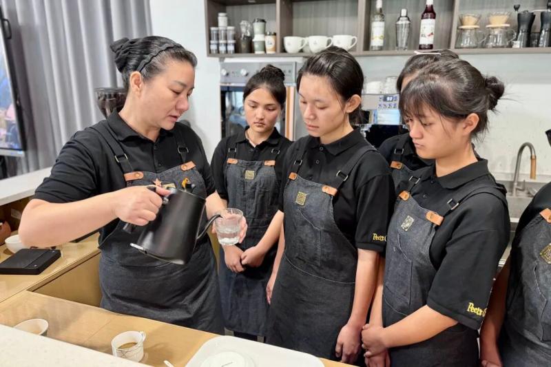 代表团一行深入学校实训中心,实地感受沪企资源落地后的育人成果。依托上海企业资源建成的咖啡实训室香气氤氲,赴沪学习归来的专业教师正在为同学们示范咖啡萃取的关键步骤。同学们围拢观摩、反复推敲操作细节。近年来,学校持续深化产教融合,与沪滇两地19家企业建立校企合作关系,推进订单式培养,让课堂与车间无缝衔接、技能与岗位精准对接。
