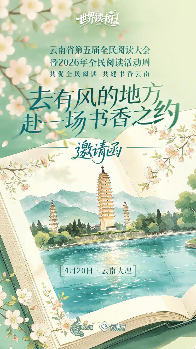云南省第五届全民阅读大会暨2026年全民阅读活动周启动仪式将于4月20日在大理白族自治州大理市举办,同步将开展全民阅读活动周、知识产权宣传周版权宣传、“护苗·绿书签”及大理诗歌季等系列活动。