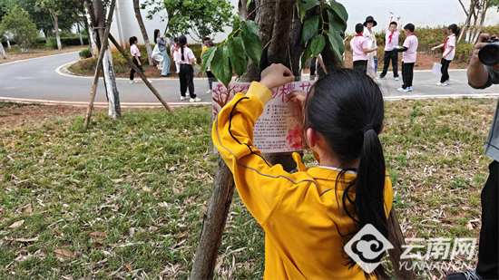 草木葱茏,绿意满园,校园里的一草一木都是鲜活的自然教材。为引导三年级学生走出课堂,近距离感受自然之美,丰富植物科普知识,提升观察实践能力与环保意识,昆明市书林二小福海校区开展“探寻生灵之美,定格植物风采”校园植物名片设计挂牌活动。同学们以动手实践的方式与校园植物亲密邂逅,在探索自然中收获知识、收获快乐、收获成长。