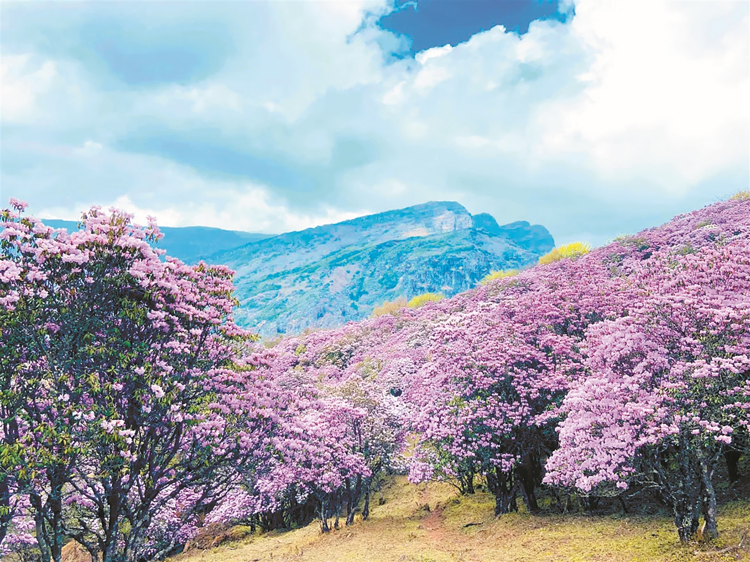 轿子山景区的杜鹃花海。昆明轿子山景区 供图