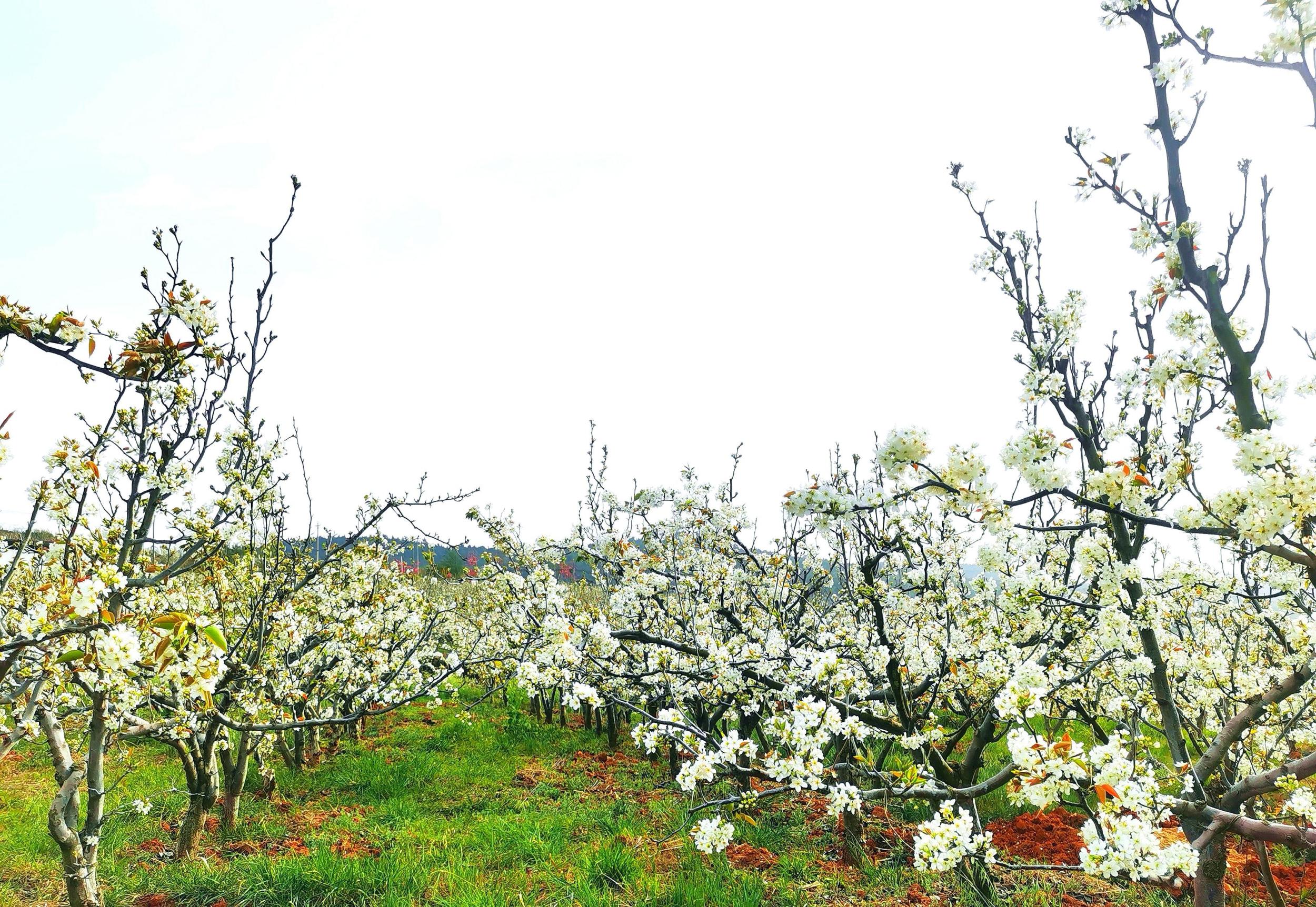 若您有幸造访凤屯镇飒马场,定会被那万亩梨花盛开的壮丽景象所震撼。放眼望去,漫山遍野的梨花竞相绽放,洁白如雪,美不胜收,香气四溢。游客们身着色彩斑斓的服饰,纷纷涌入梨花园中赏花拍照,尽情享受春日的美好时光。