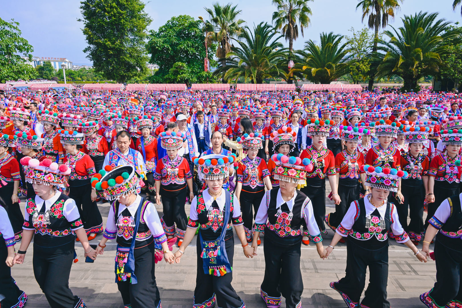 化湖广场上,成千上万人穿着绚丽的民族服饰,弹起龙头四弦琴,唱起彝家左脚调,跳起千年左脚舞。那场面,真是壮观!无论你是本地人还是客人,只要进了那个圈子,就会被那种热烈的气氛感染,不由自主地跟着跳起来。