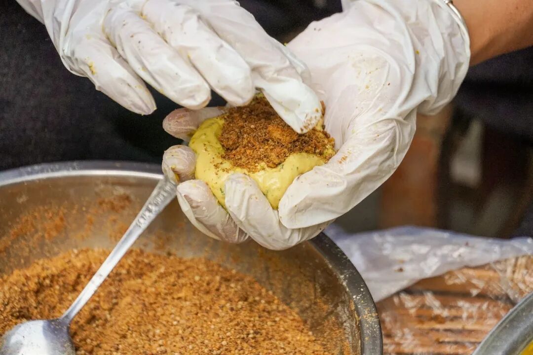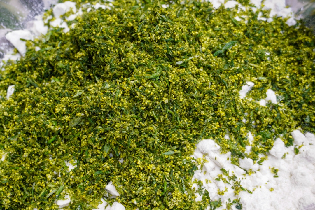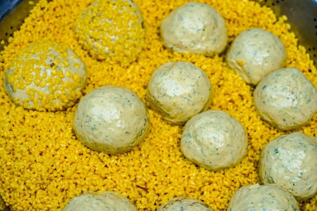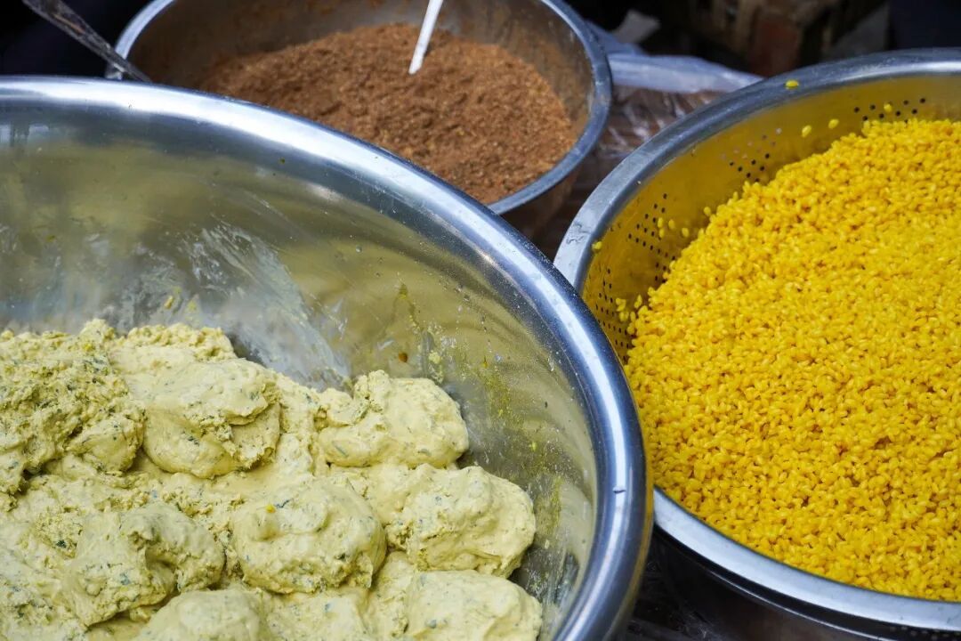“黄花要选饱满的,舂的时候不能急,得慢慢舂细。”老板萍姐一边舂着黄花,一边讲述着做黄花粑粑的手艺。她说黄花清香,细细舂碎才能让香气充分发挥出来,让每一口黄花粑粑都藏着陇川的山野气息。