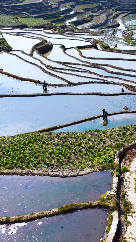 眼下,位于云南省红河哈尼族彝族自治州元阳县的哈尼梯田迎来春耕时节。层层梯田水光潋滟,倒映天光云影。田间地头,哈尼群众挖田、打埂,耕牛稳步犁田、农人弯腰插秧,尽显人与自然和谐共生的动人画卷。