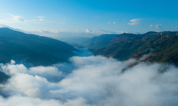 近日,云南省保山市昌宁县现晨雾映日出美景,云卷云舒间尽是灵动韵味,雾中日出绘就了冬日优美的画卷。
