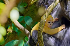 近日,摄影师在云南省芒市拍摄到国家一级保护野生动物中缅灰叶猴的珍贵画面。画面中,一只金黄色的幼猴依偎在妈妈怀里,时而好奇地张望四周,时而调皮地抓着母亲的毛发,模样惹人喜爱。