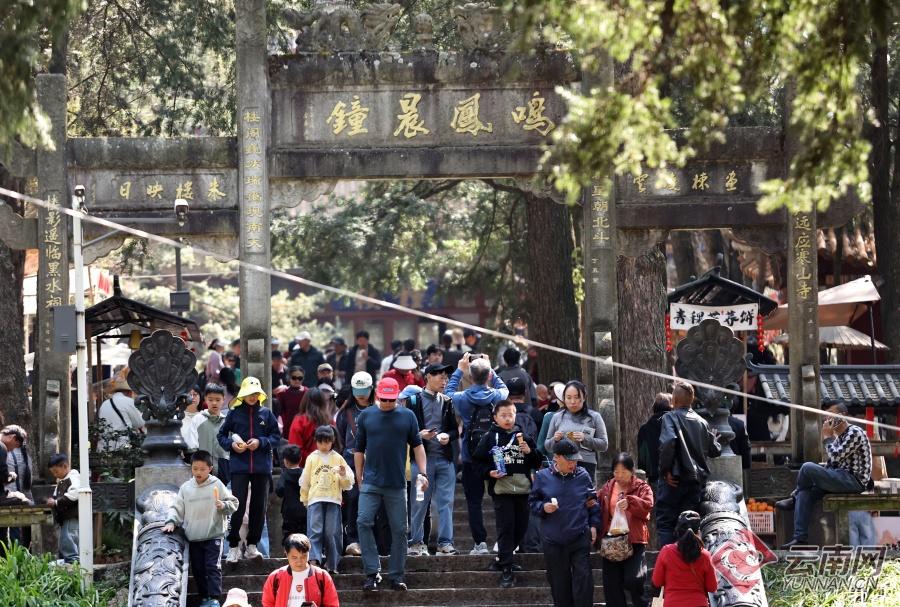 大年初二,昆明市金殿名胜区内阳光明媚,游人如织。40万株、1200多种山茶盛放,红粉缀枝、艳压群芳。