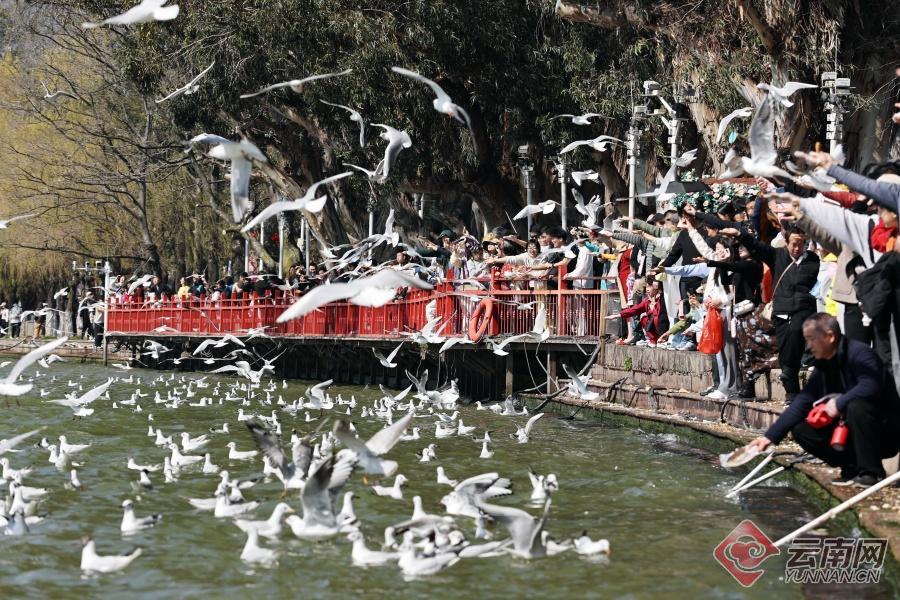 大年初二,昆明市海埂公园、福保村人头攒动,来自全国各地的游客齐聚滇池赏美景与红嘴鸥同乐,欢度春节。