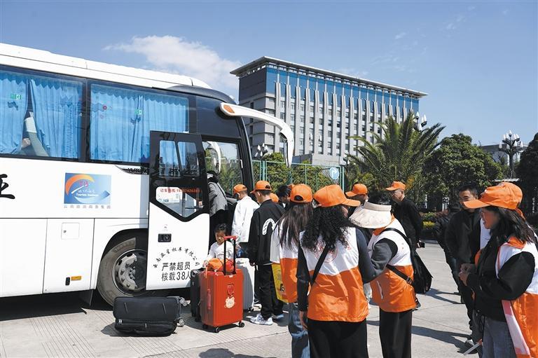 近日,陆良县举办2026年外出务工人员集中欢送活动,一批批务工人员搭乘“务工专车”,从“家门口”直达“厂门口”,开启新一年增收之旅。