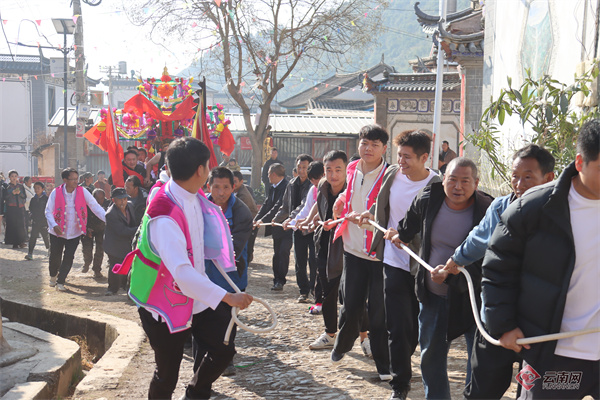 当元宵圆月映照千年古邑,大理白族自治州宾川县大营镇萂村的街巷便沸腾起来。农历正月十五,这里迎来一年一度的“天子节”。