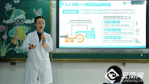 3月5日,由昆明市政协教科卫体委员会、民进昆明市委会、昆明市关工委联合昆明普瑞眼科医院举办的“开学第一课 近视防控我先行”公益讲座活动走进五华区龙翔小学。