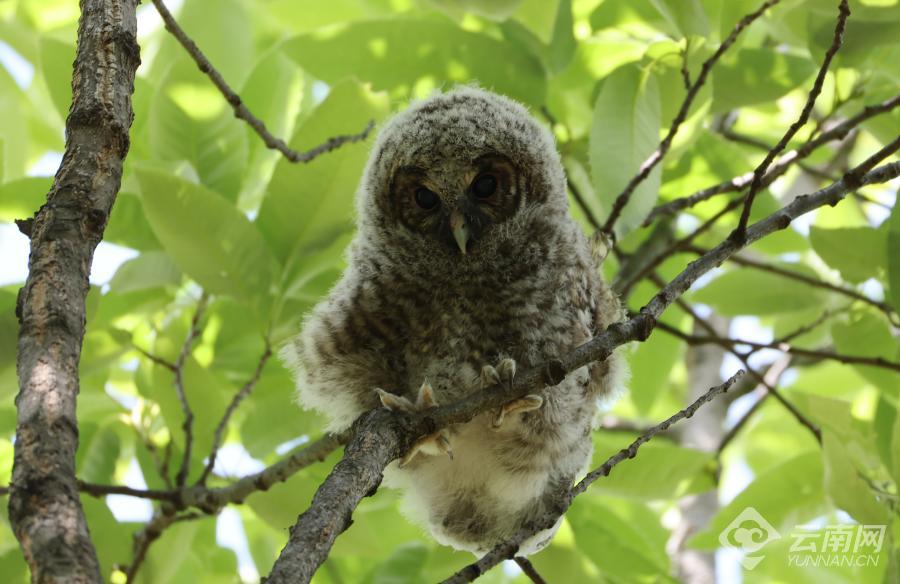 昆明春城,万物复苏,良好的生态环境引得野生鸟类在都市中“安家育儿”。近日,在昆明黑龙潭公园内的一棵树上,市民与观鸟爱好者发现国家二级保护野生动物灰林鸮,成功繁育出两只毛茸茸的雏鸟。