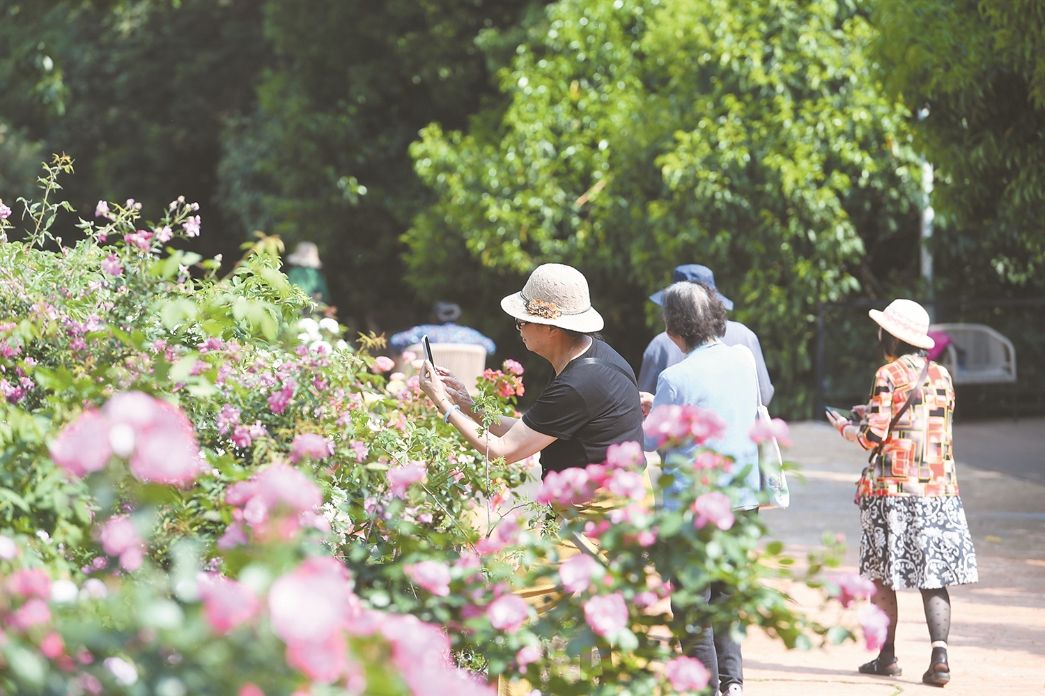 四月春深,昆明植物园的蔷薇进入盛花期,在昆明植物园扶荔宫室外展区,空气中弥漫着蔷薇的香味。